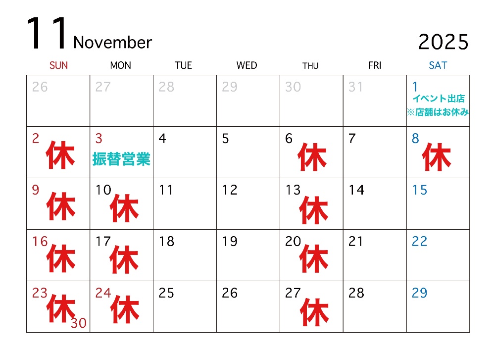 ※11/1は貸切のご依頼で出張営業のため、店内&テイクアウト営業はしておりません